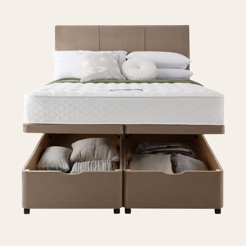 • Large under-bed storage with easy-lift access