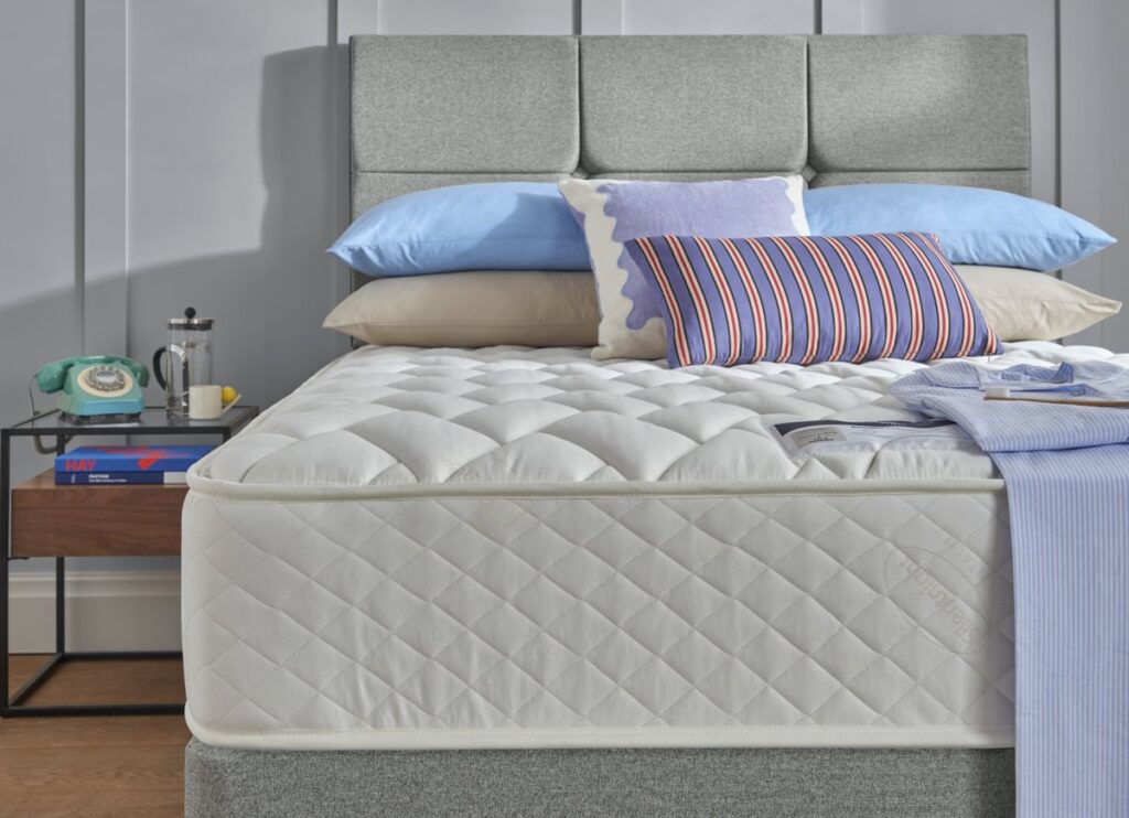 Linen fabric finish. Stain-resistant and anti-microbial. Suitable for divan bases only.